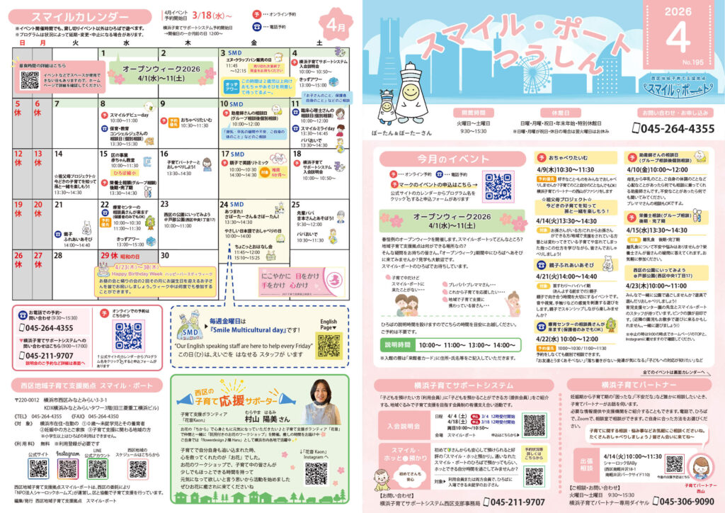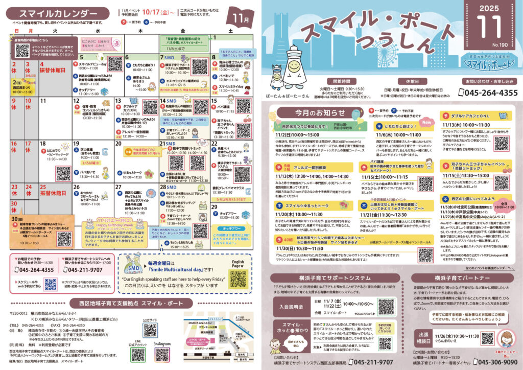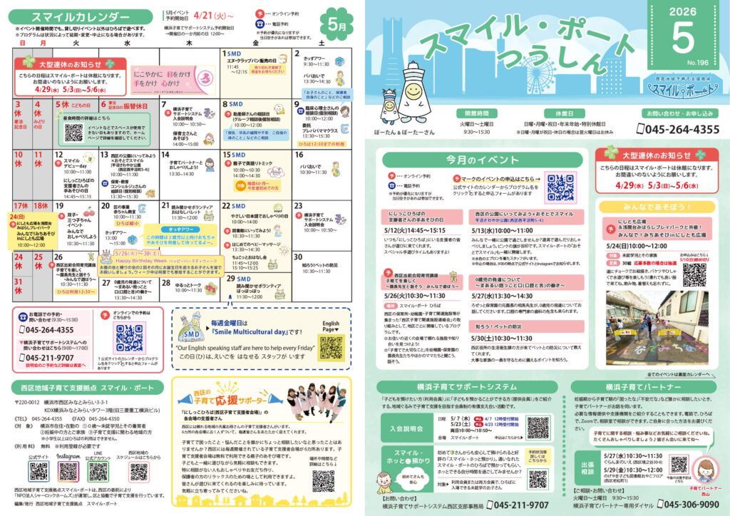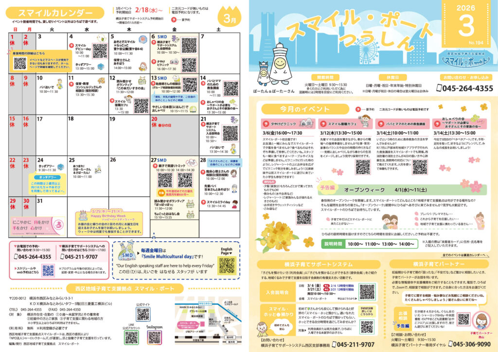 スマイル・ポートのイベントや子育てに関するお知らせを毎月発信しています。