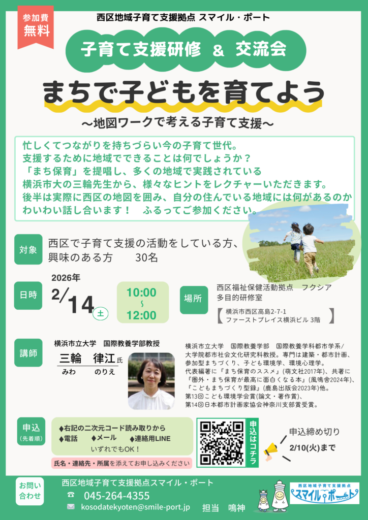 対象:西区で子育て支援の活動をしている方、興味のある方 30名(先着順)