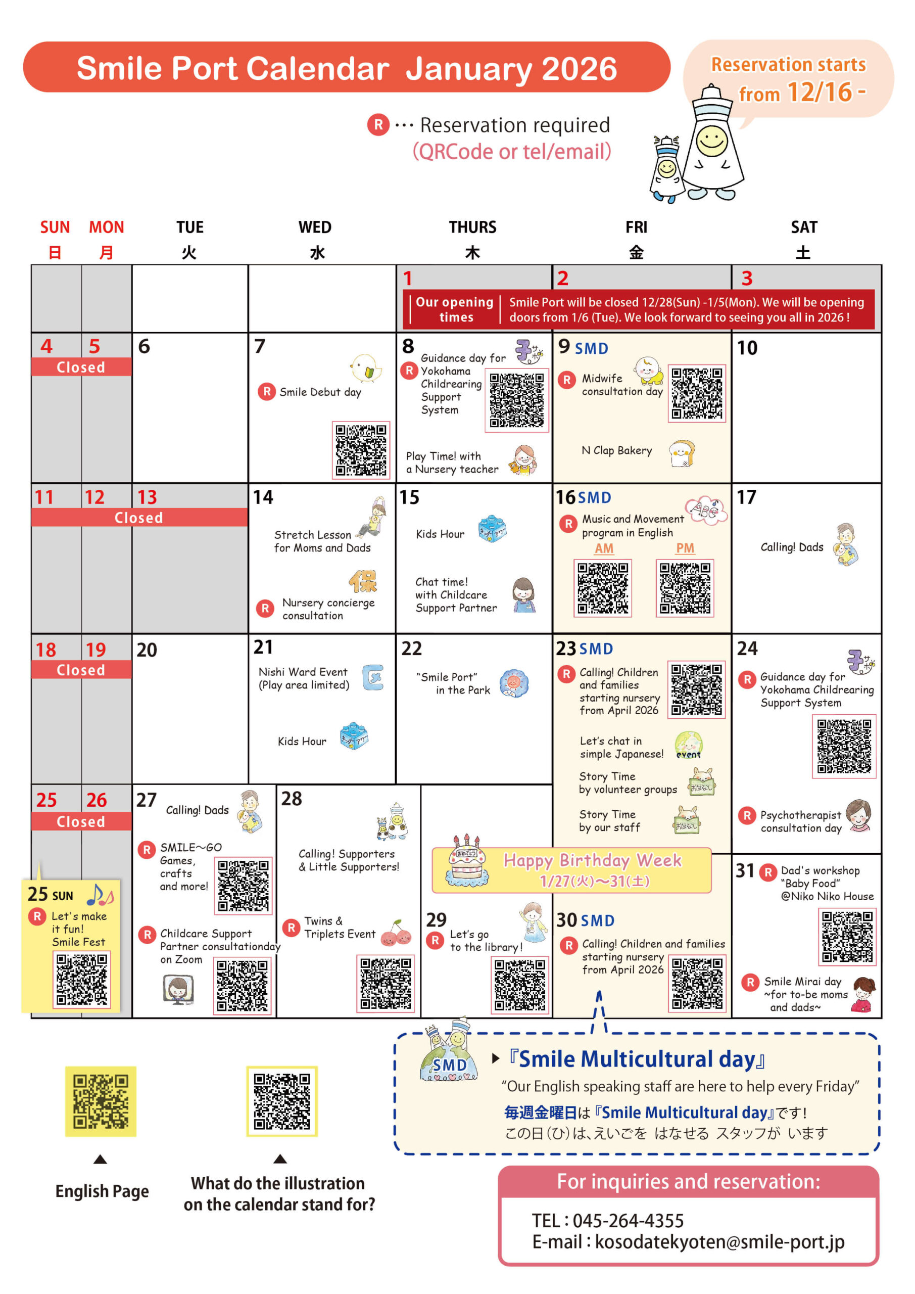 - “Smile Port” is a place where children (preschoolers), moms, dads, grandparents and guardians can play, learn, chat, and relax together.