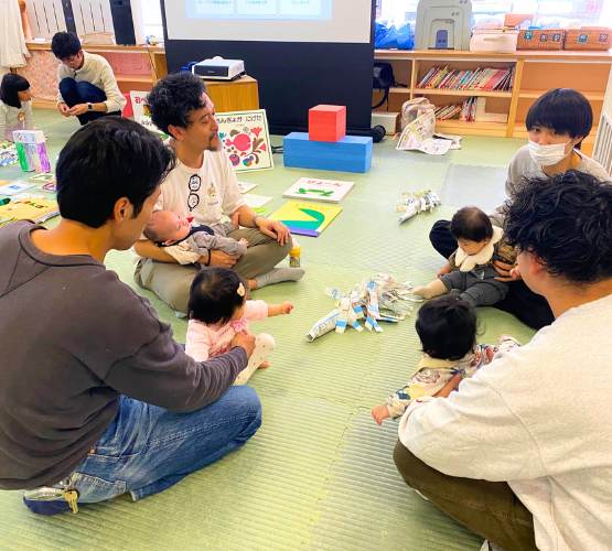 「他のパパもいたらいいな~」というパパたちの声から始まった 「パパおいで」の日。毎月平日と土曜日の月2回開催します。 手作りおもちゃなど、製作の日もあります。