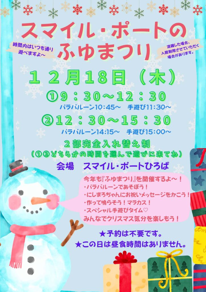 スマイル・ポートの『ふゆまつり』開催します⛄