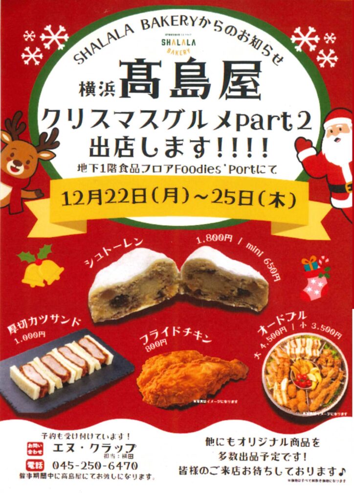 毎月スマイル・ポートのひろばでパンを販売してくれている『エヌ・クラップ』さんが、横浜高島屋クリスマスグルメに出店します♪