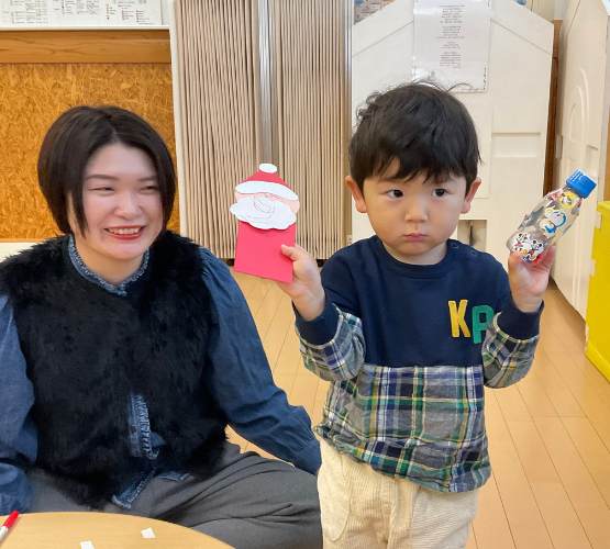 輪投げやボール入れを楽しんだり、工作コーナーではサンタのオーナメントや自分だけのマラカスを作ったり。