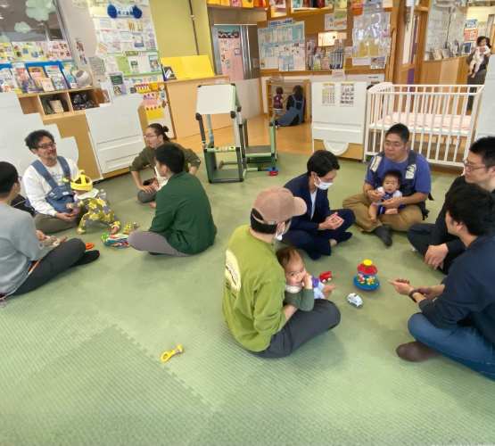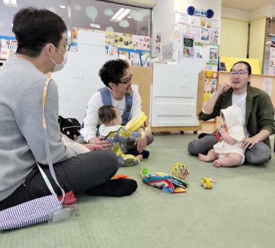 「初めてここに来ました」というパパにも、「おいでおいで お子さんは何か月ですか?」と引き込むパパさんたち。