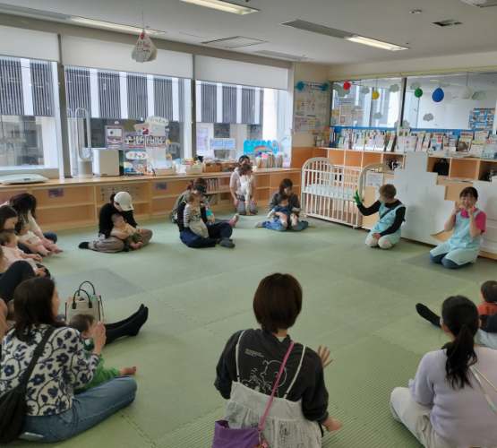 手あそびの時間に、スタッフによるちょこっとおはなし会を開きます。