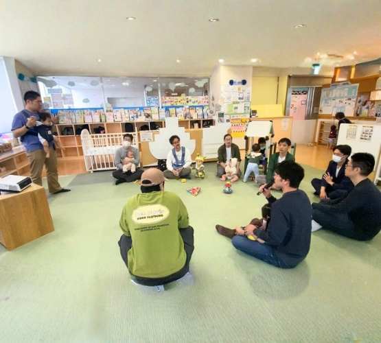 スマイル・ポートで開催したプレパパママクラスの時、先輩パパとして参加していたファシリのパパに会いに来てくれた方もいました。