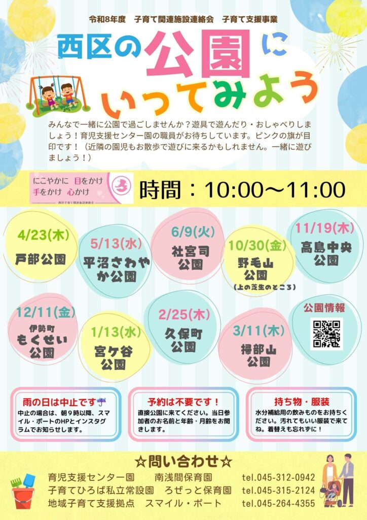 西区の子育て関連施設連絡会の合同企画「西区の公園にいってみよう」が今年度もスタートします。