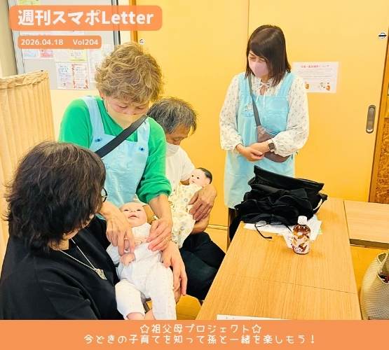 現在、地域の子育て支援に携わっている皆さんや、今後地域で活動したいという方、「今度孫を迎える予定です。」という方、ぜひ『☆祖父母プロジェクト☆今どきの子育てを知って孫と一緒を楽しもう』にご参加ください。お孫さんがいる世代でなくても大丈夫です♪